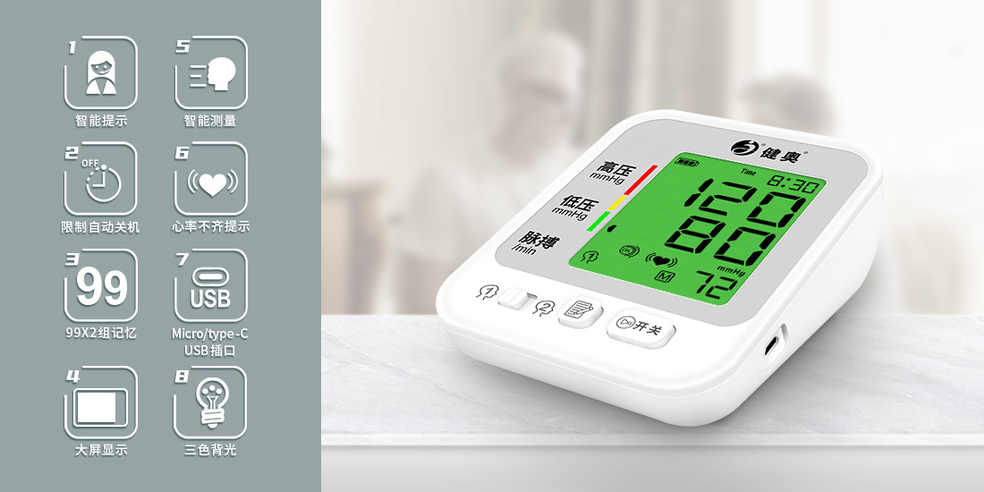智能芯片,多重技術升級, 99組記憶數據精確掌握血壓變化
