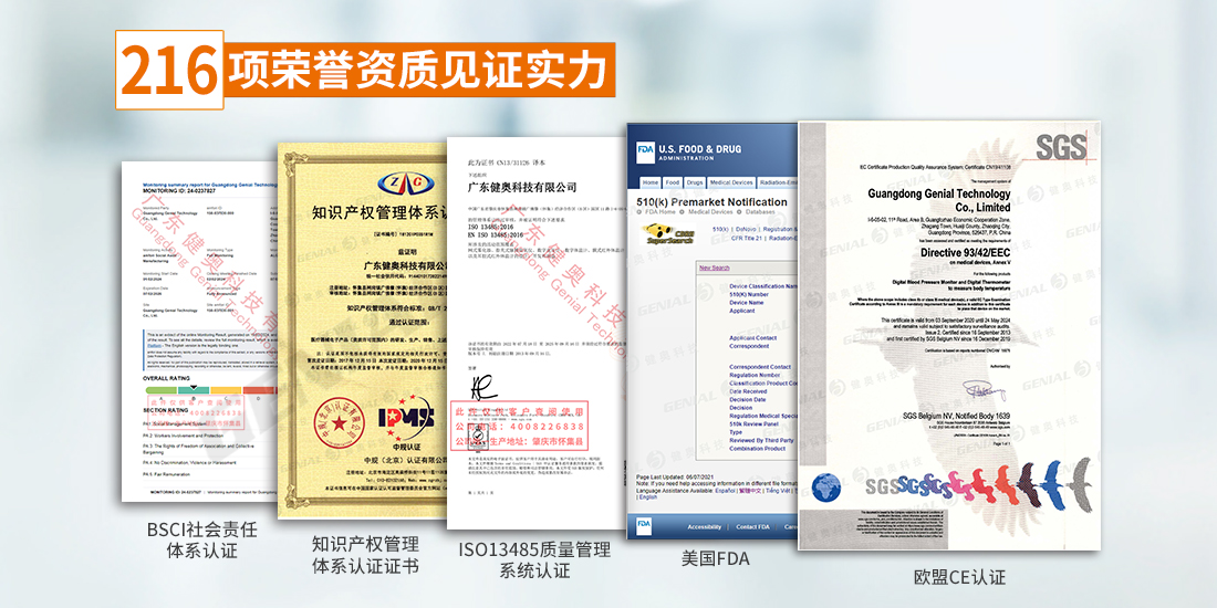 不斷研發(fā)創(chuàng)新,企業(yè)已經(jīng)獲得216項(xiàng)榮譽(yù)資質(zhì),并且通過(guò)了ISO 13485 、ISO 45001、 ISO 14001、GB/T 29490知識(shí)產(chǎn)權(quán)管理體系認(rèn)證、BSCI社會(huì)責(zé)任體系認(rèn)證;